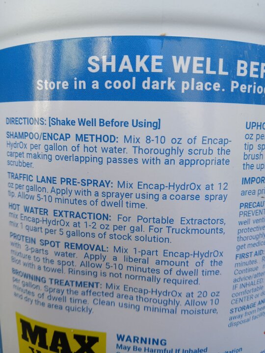 Some encaps with peroxide ( Hydrox ) say they can be used as a Hot Water Extraction Detergent