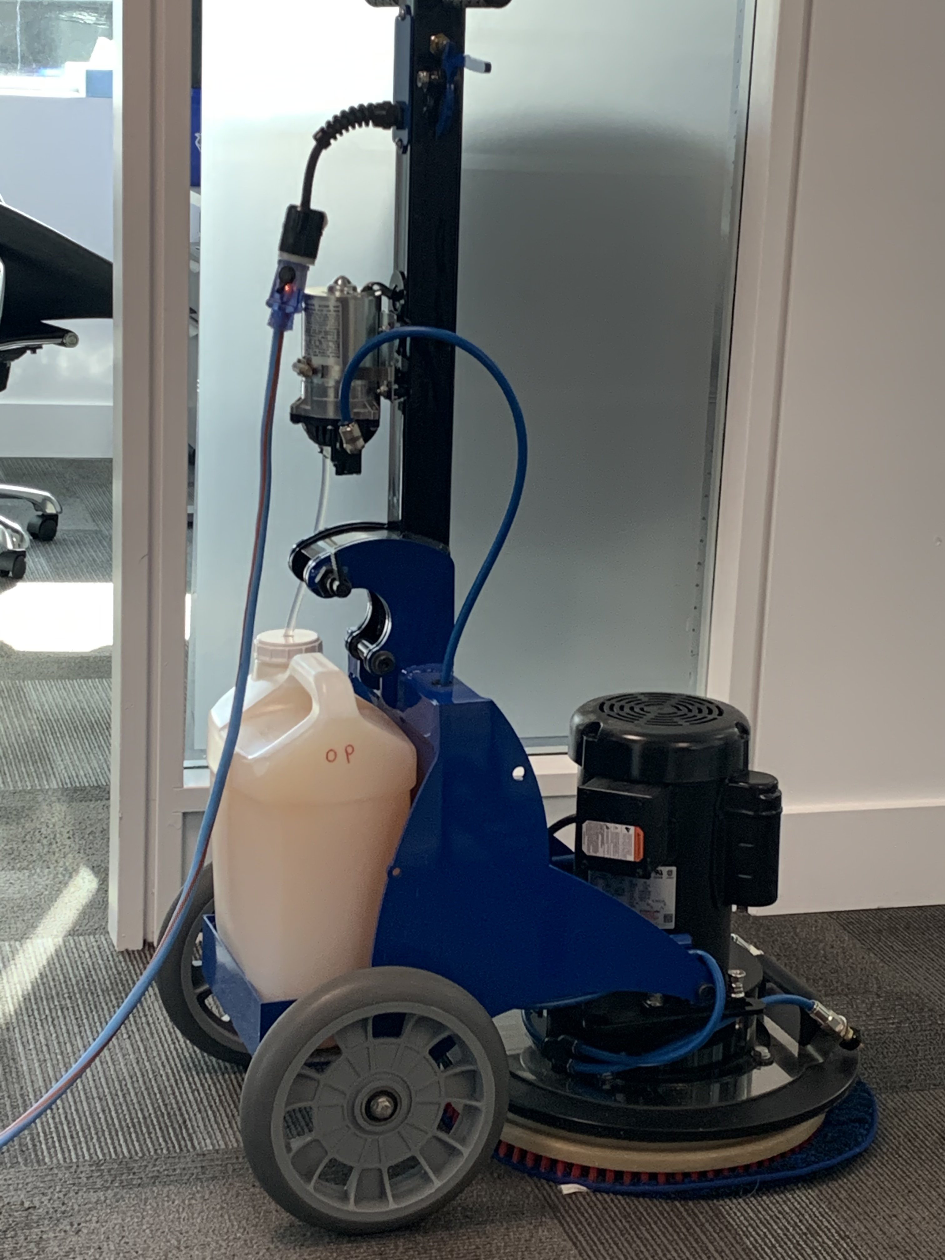 You can always 2-man crew it. One lays down the solution with an electric sprayer and the other run the machine. Or you spray an area then clean it, repeating the process over and over.