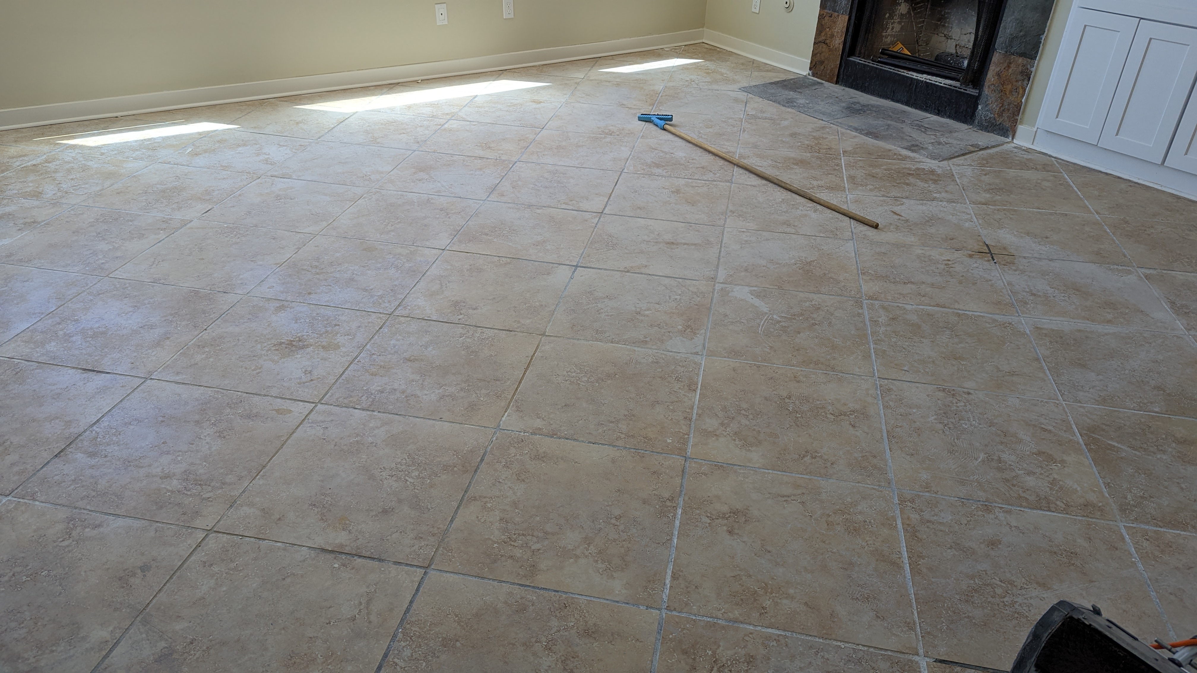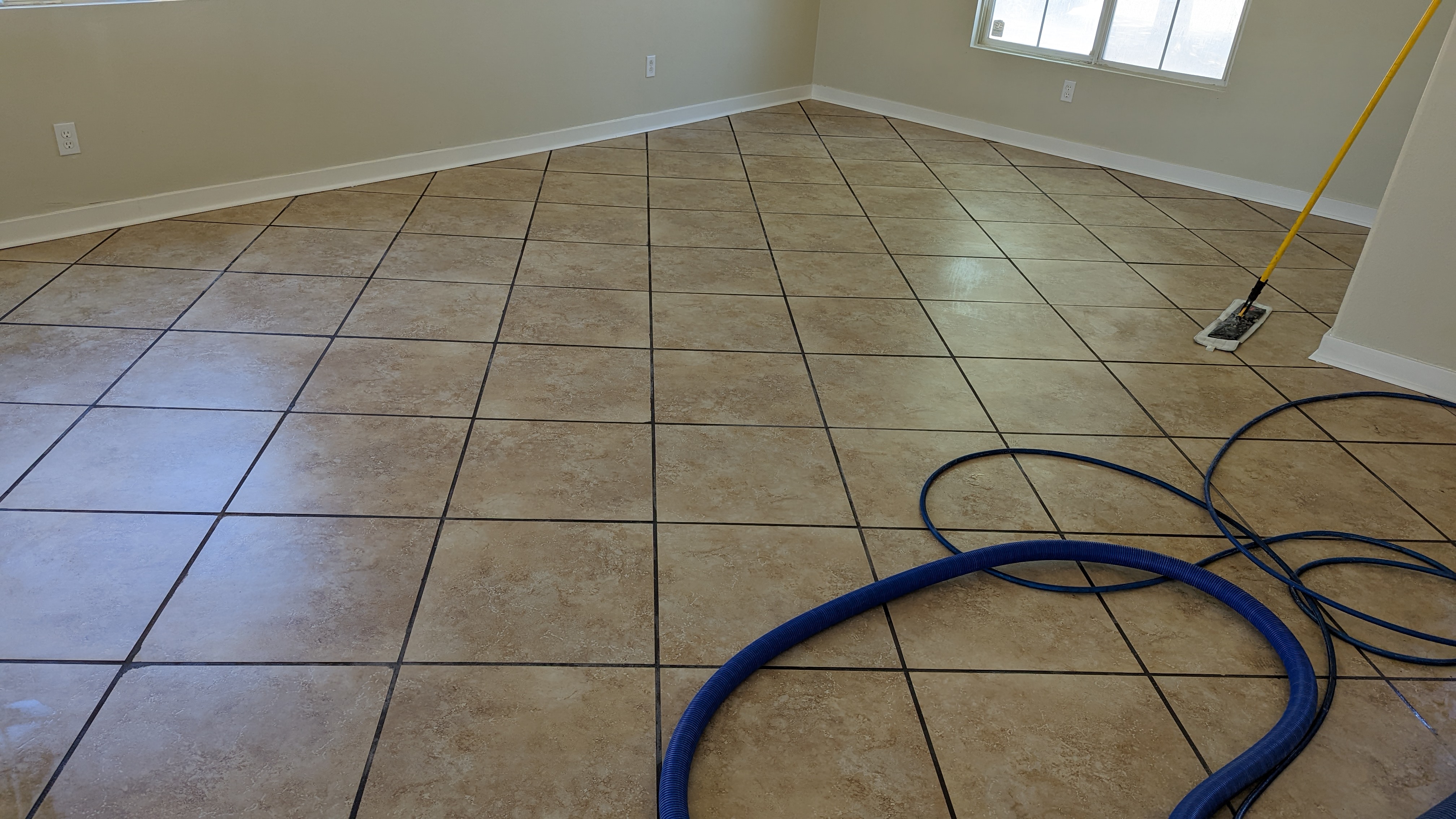 I still see some sheetrock on that grout. What cleaner did you use?Go clean the tile he says,