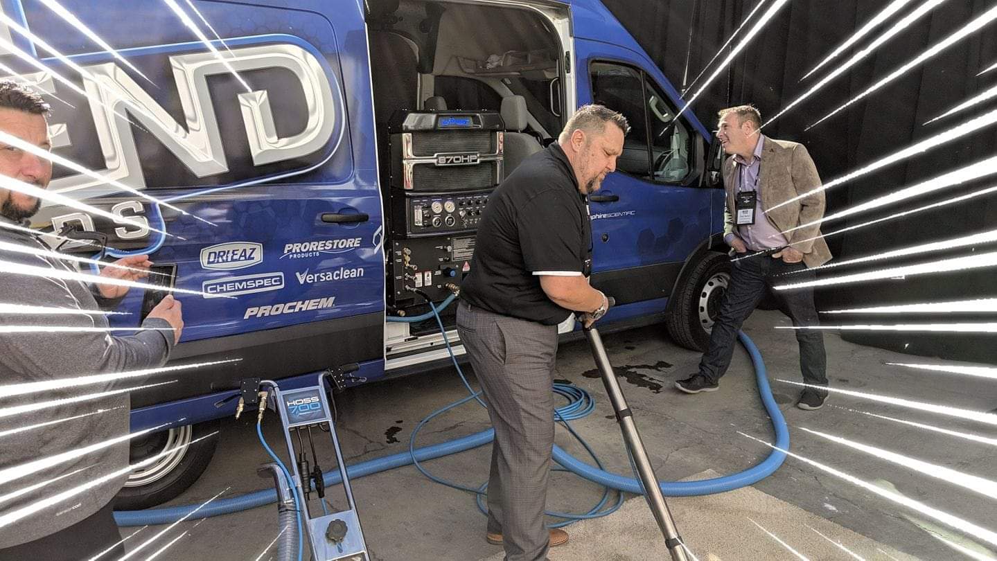 Hundreds and hundreds of feet of hoses out, cleaning tile, concrete, brick and carpet non stop, all day. Dual wanding, Dual Spinners, all hands and eyes on deck..